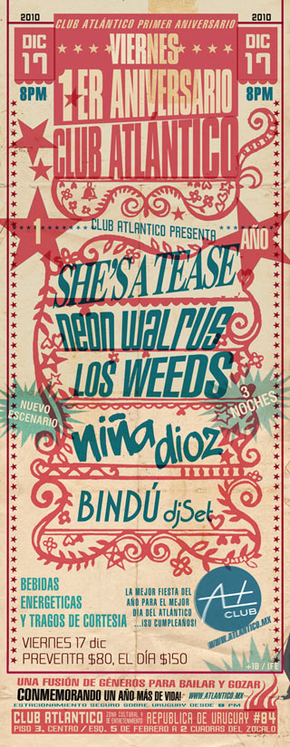 PRIMER ANIVERSARIO DEL CLUB ATLÁNTICOSHE'SA TEASE / NEON WALRUS / LOS WEEDS / NIÑA DIOZ /BINDÚ [djSet]Viernes 17 de diciembre